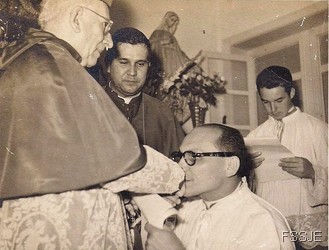 embrassant l’anneau épiscopal de Dom Carlos Duarte Costa